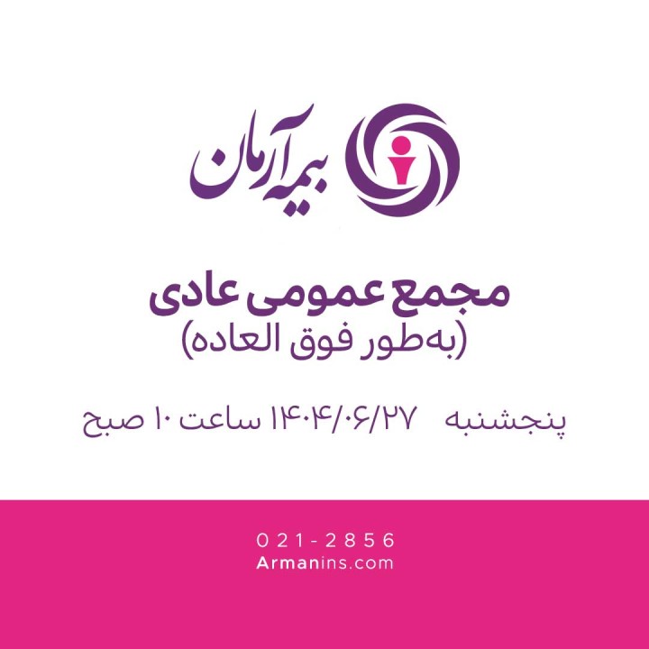 این جلسه روز پنجشنبه 27 شهریورماه 1404 رأس ساعت 10 صبح در سالن اجتماعات ساختمان مرکزی بیمه آرمان به نشانی تهران، بلوار میرداماد، خیابان شمس تبریزی جنوبی، پلاک 4 برگزار میشود.