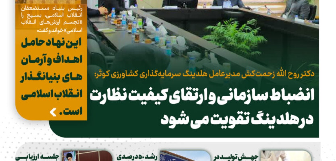 این گزارش میافزاید، در بخش دیگری از این شماره به سخنان رئیس بنیاد مستضعفان انقلاب اسلامی اشاره شده است که بسیج را «تجسم ارزشهای انقلاب اسلامی» دانسته و این نهاد را حامل آرمانهای امام خمینی (ره) معرفی کرده است. همچنین برداشت 6٫250 کیلوگرم خاویار امپریال بهعنوان یکی از نشانههای جهش تولید در زنجیره آبزیپروری هلدینگ ثبت شده است.