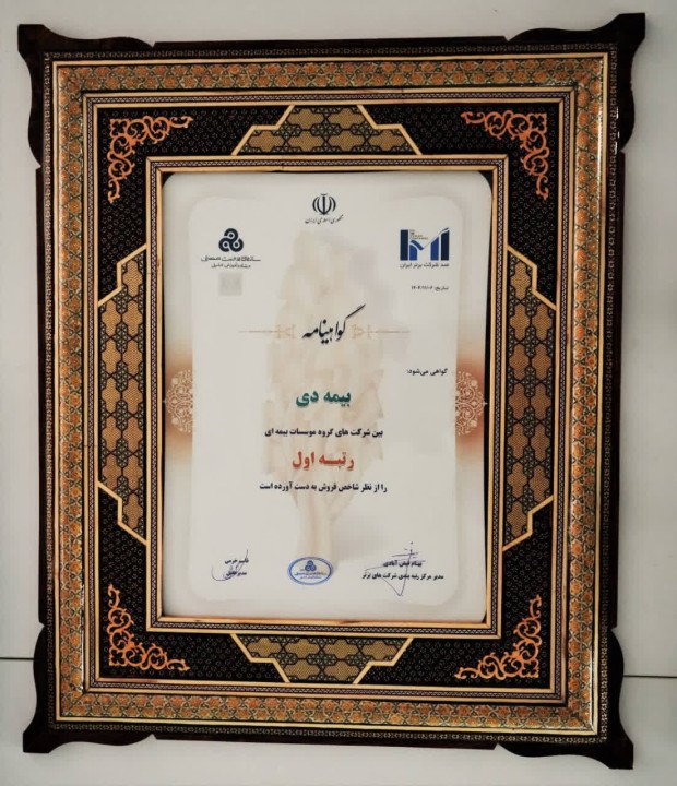 سازمان مدیریت صنعتی کشور در همایش انتخاب ۱۰۰ شرکت برتر کشور ، با حضور معاون اول رئیس جمهور ، شرکت بیمه دی را به عنوان رتبه اول در بین مؤسسات بیمه ای کشور انتخاب کرد.